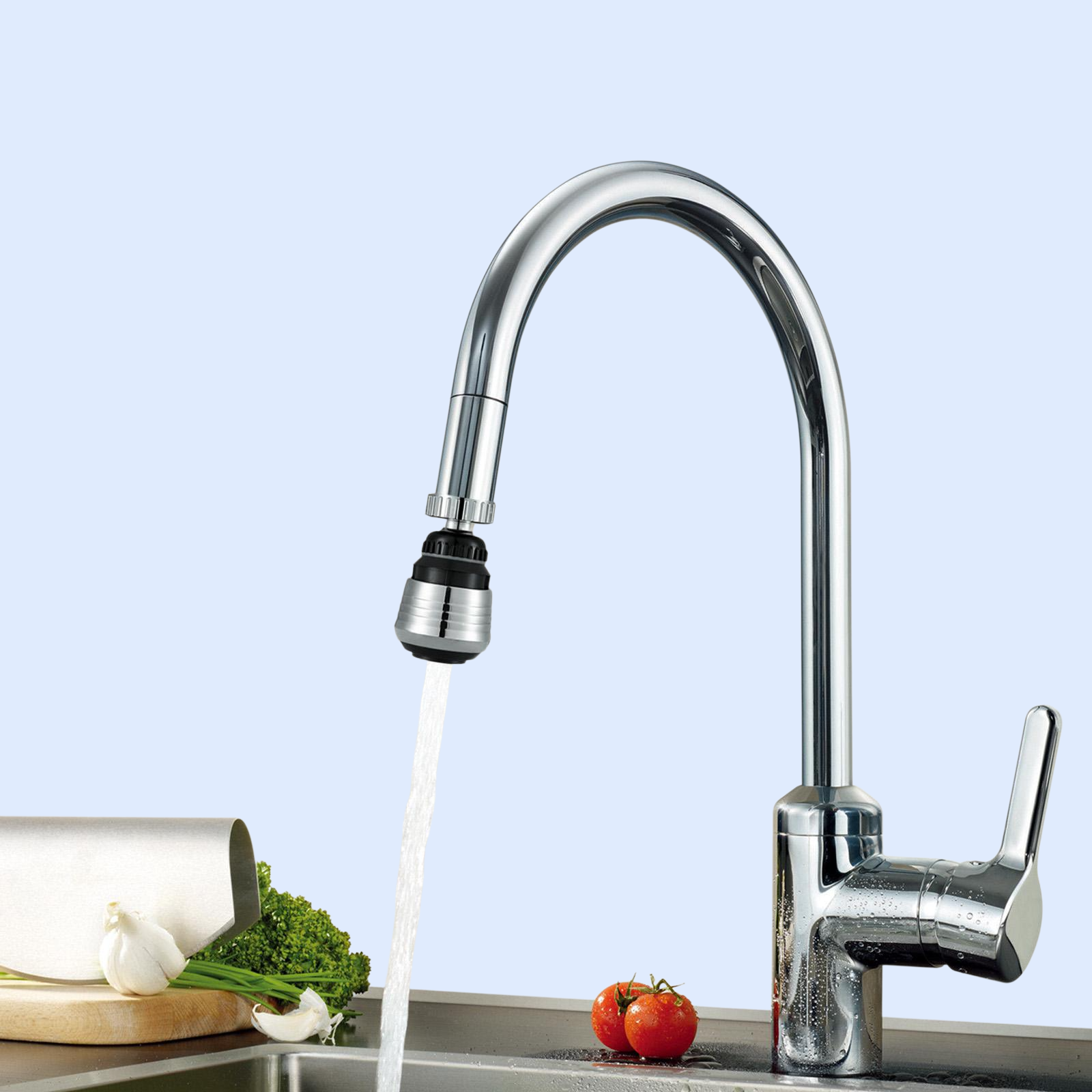 家庭用キッチン蛇口用防飛散ヘッド、自在回転増圧ステンレスシャワー